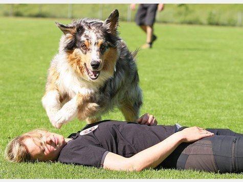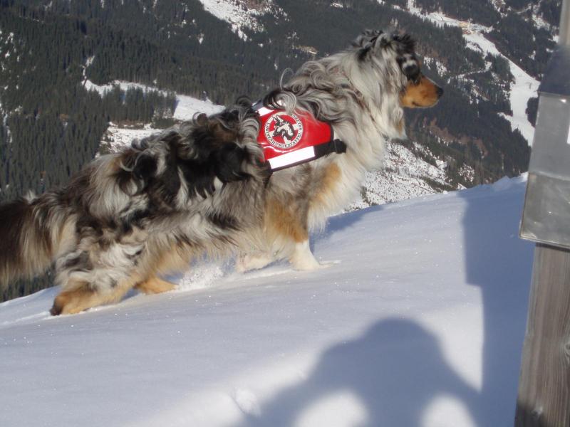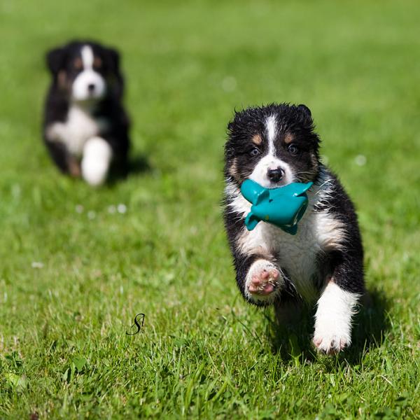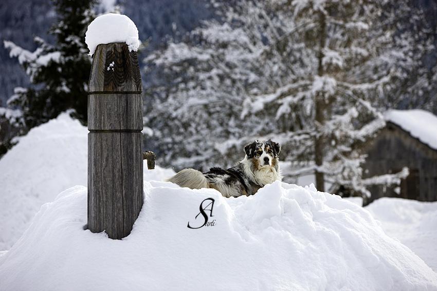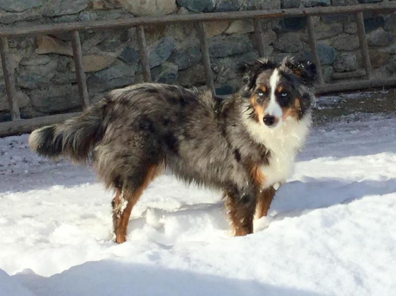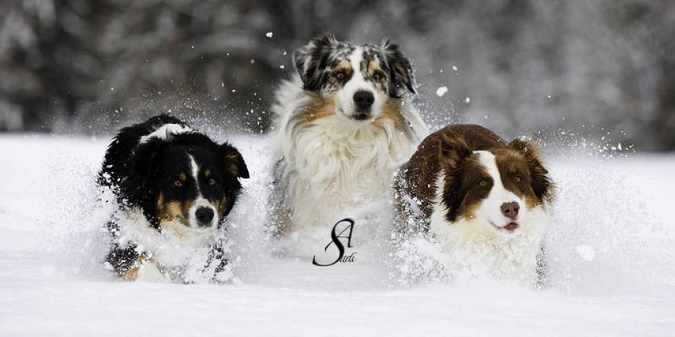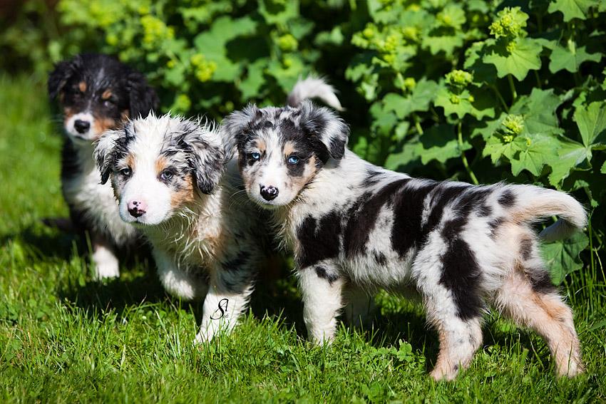 Australian Shepherds sind liebenswerte Familienhunde mit sehr guten Hüteeigenschaften. Deshalb fühlen sie sich am wohlsten, wenn sie hüten können - Schafe, Pferde, Enten oder auch ihre Familie. Geradezu ihr Markenzeichen ist ihre Intelligenz. Sie sind eifrige und gute Schüler. Natürlich ist der Australian Shepherd kein Hund für bequeme Leute, mir ist es aber wichtig zu sagen, dass er auch nicht 24 Stunden am Tag beschäftigt sein will. Auch er braucht Ruhe und sollte einfach mal Hund sein dürfen. Ich beobachte, dass - weil es im Rassebuch steht - er oft überbeschäftigt wird und dadurch oft unruhig wird. Gerne wird er geistig beschäftigt. Seine Eignung als Reitbegleithund war letztlich der Grund, warum er zusammen mit den Quarterhorses seinen Weg nach Europa fand. Unsere Aussies leben bei uns in der Familie im Haus. Mit dazu gehören natürlich unsere Pferde, Katzen, Minschafe und Hühner. Sie lieben es uns auf langen Ausritten zu begleiten und sind, da sie über keinen Jagdtrieb verfügen dafür sehr gut geeignet.